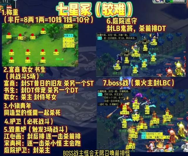 八是七星冢,boss战主怪会无限召唤,前排怪需要携带水晶特技,具有足够的伤害。